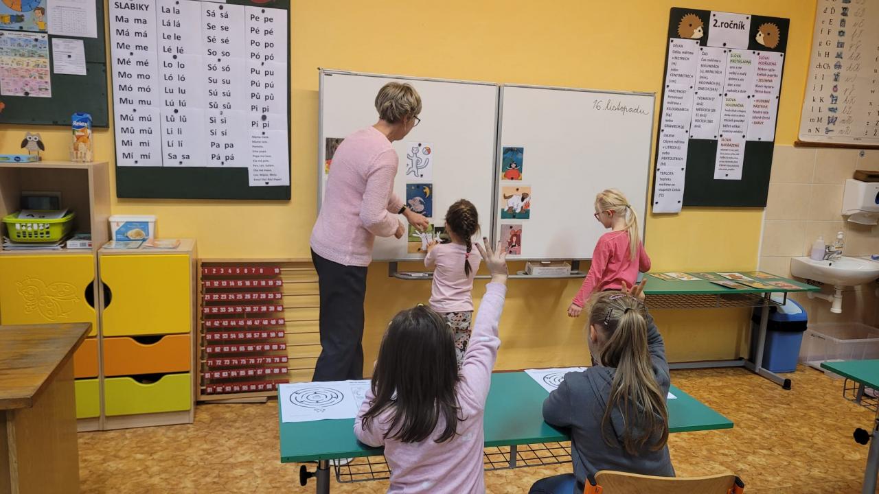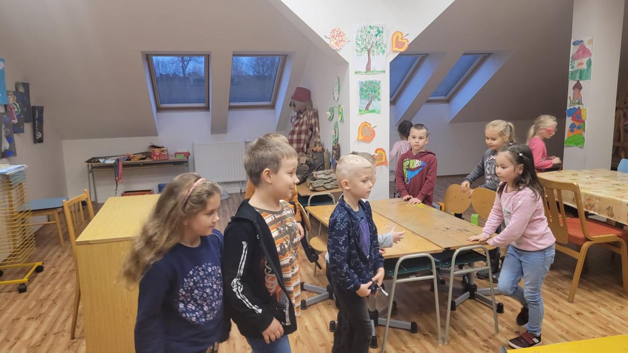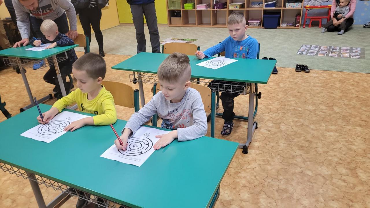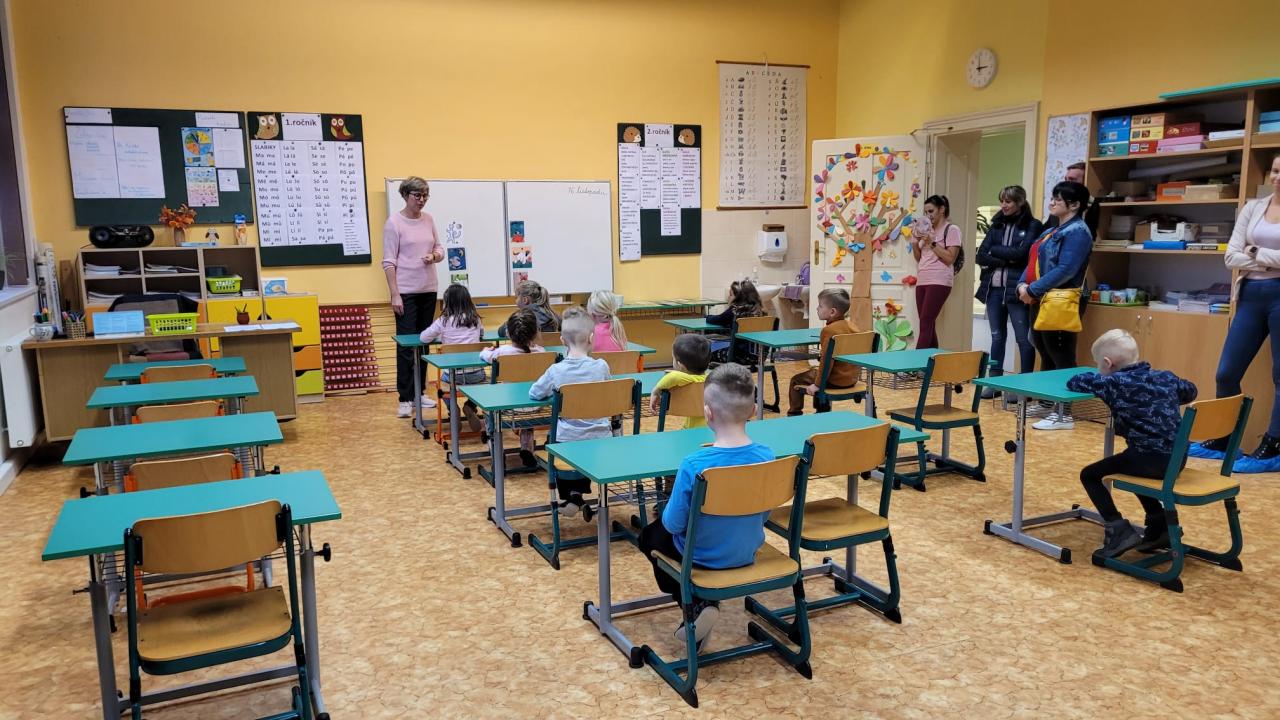 Předškoláci s rodiči navštívili ve středu 16.11. základní školu, prohlédli si všechny třídy a s pomocí paní učitelky plnili úkoly.