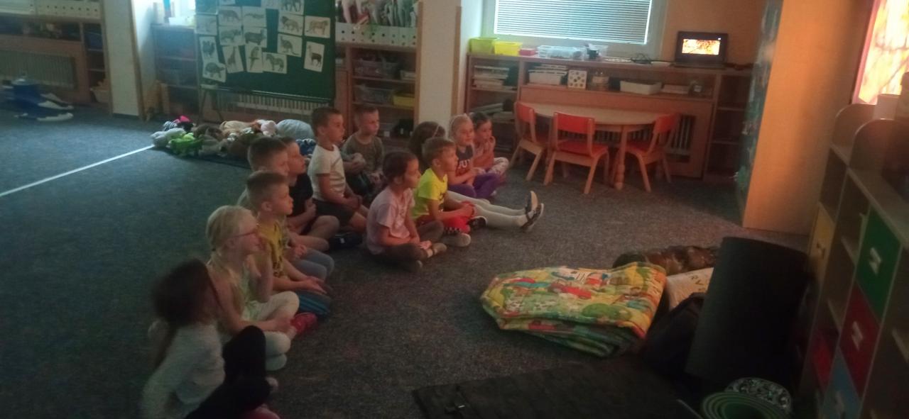 Nejdříve jsme si s dětmi opekli špekáček, potom jsme předváděli taneční kreace, báli se u pohádky a nakonec jsme šli za tmy hledat poklad hlídaný strašidlem... Děkujeme odvážným předškolákům a rodičům za jídlo a pití... :)