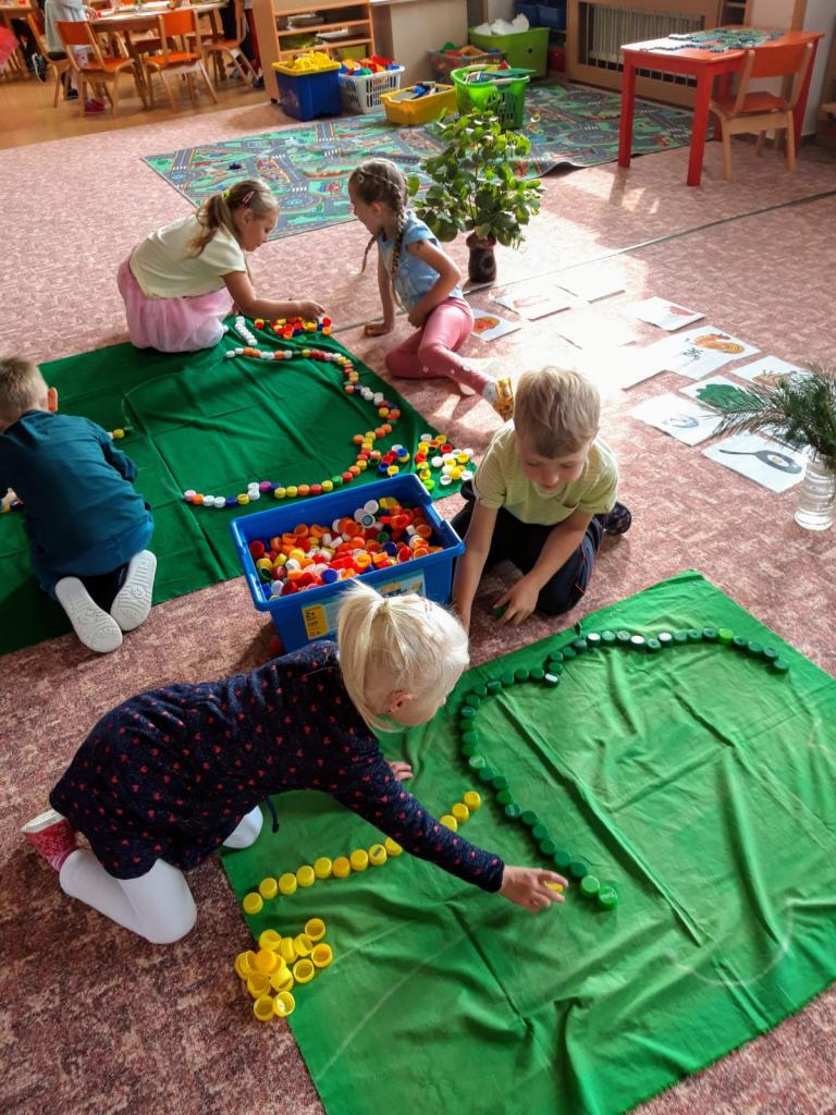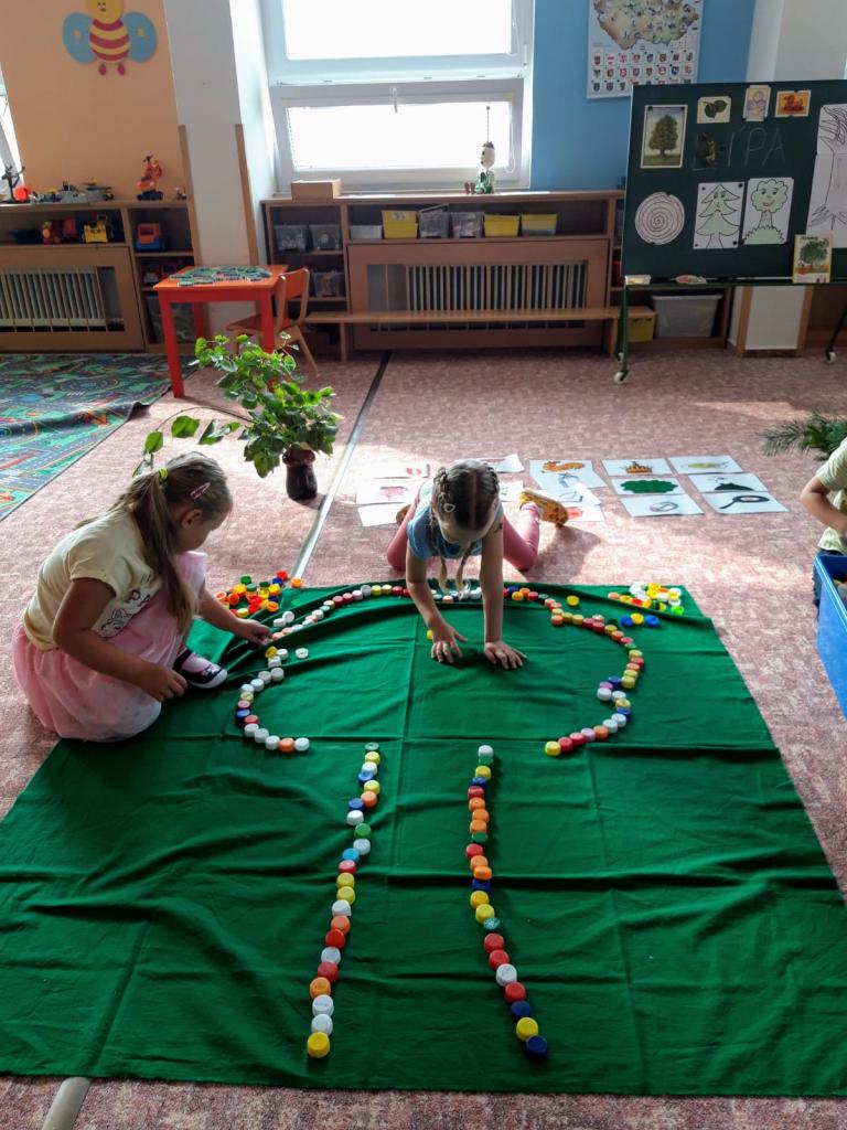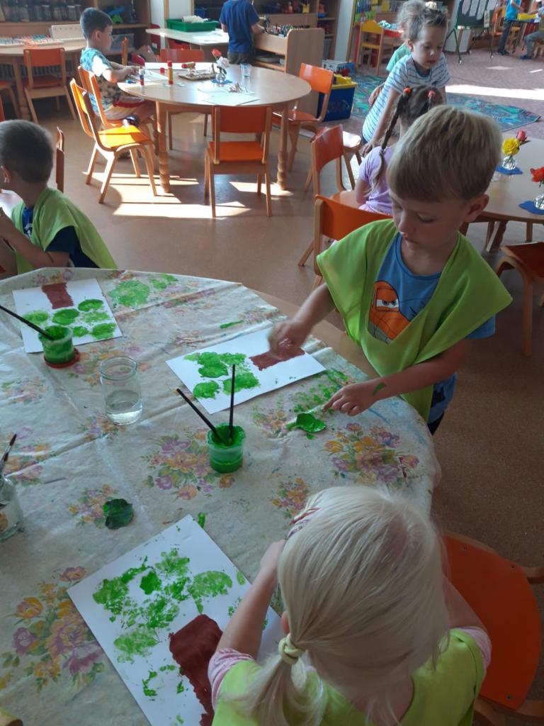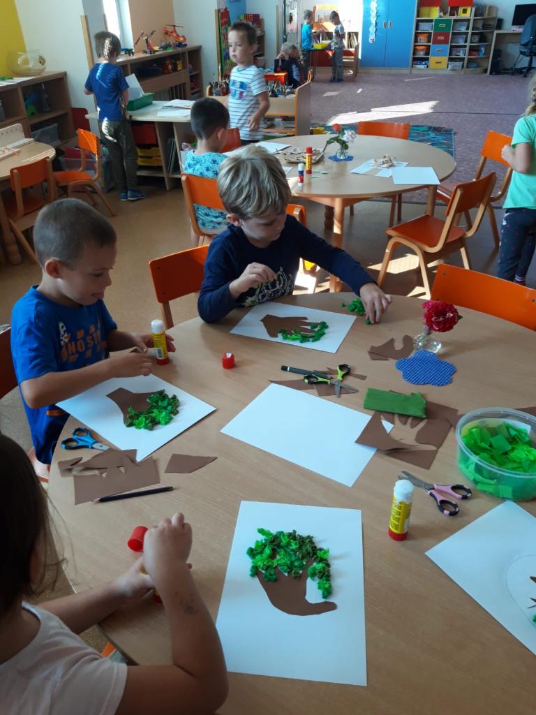 Děti poznávaly stromy a tvořily je z různých materiálů.