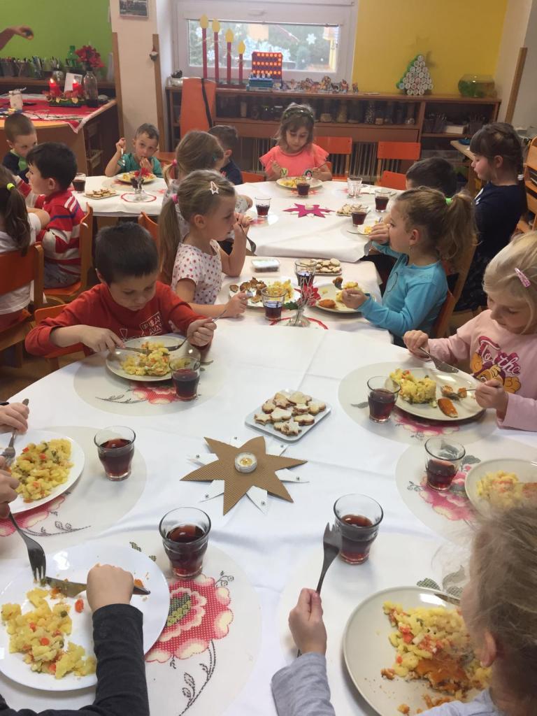 Ve čtvrtek proběhla vánoční andělská besídka u Myšek a v pátek u nás byl Ježíšek a nadělil nám pod stromeček vánoční dárečky, na které se všechny děti moc těšily, následoval společný vánoční oběd.